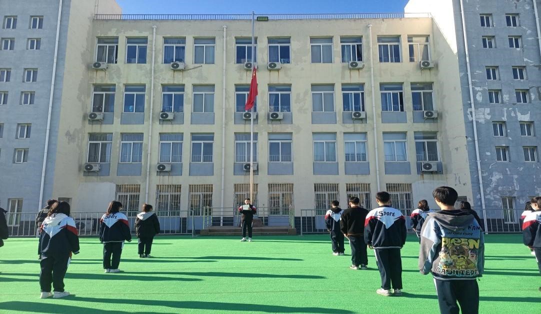 國(guó)歌聲響,鮮紅的五星紅旗緩緩升起,全體師生面向國(guó)旗,莊嚴(yán)肅立,內(nèi)心激蕩著愛(ài)我中華的心潮;國(guó)歌聲止,國(guó)旗稍作停留后又緩緩落下,降至半旗位,以國(guó)之名,為死難同胞致哀。
